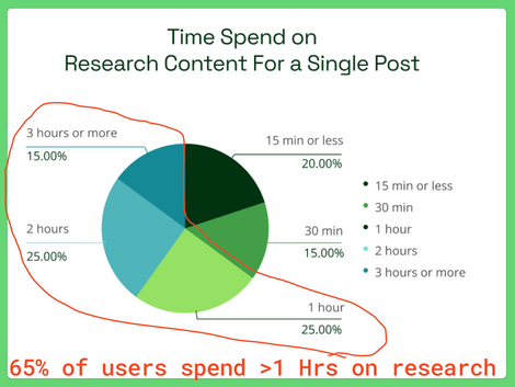 65% of users spend over 1 hour on research per post (12 posts a month)